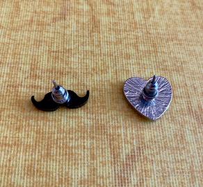 - Orecchino nero a forma di baffi all'inglese