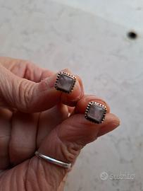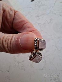 Orecchini a lobo in argento 925 con pietra in quarzo rosa.