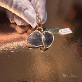 Orecchini in oro giallo 750/18k punzonati con pendenti in radice di zaffiro contornato da un pave' di zirconite. bellissimi! elegantissimi