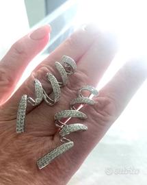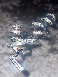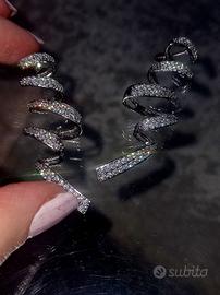 Vendo un paio di orecchini a spirale in cubic zirconia, nuovi, lunghi 5 cm, leggeri e luminosi.
