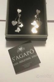 Orecchini acciaio S’agapò, con scatola originale e garanzia di acquisto. farfalline e cuoricini intercalati da pietre nere. spedizione veloce il giorno dopo