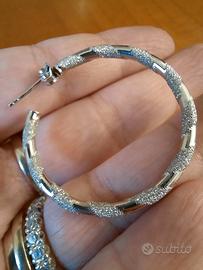 orecchini ad anello argento 925,lavorazione diamantata e liscia ,