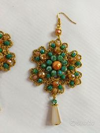 Orecchini ad uncinetto realizzati interamente a mano.