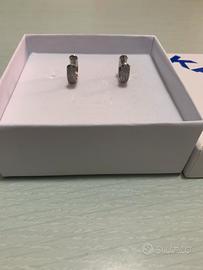 Vendo per inutilizzo orecchini a cerchio in argento 925 mai indossati sono come nuovi Materiale: Argento 925 (argento sterling) Zirconi cubici di alta qualità - FRONTE , RETRO Dimensioni: Diametro: 10 mm Spessore: 5 mm. Peso: 2,5 grammi per orecchino (circa) Chiusura: Chiusura a scatto Finitura: Lucida con pavé di zirconi cubici
