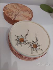 Orecchini Alviero Martini Prima Classe. Gli orecchini sono in stato perfetto, ma la scatola è un po' consumata sulla parte superiore. Posso eventualmente fornire un'altra scatola per gioielli (bianca, senza marchio), nel caso in cui servisse come regalo.