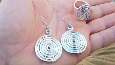 Orecchini argentati con monachelle in acciaio inox, anello regolabile, kit .