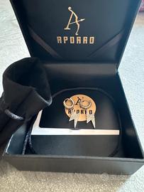 Vendo orecchini Aporro originali a cerchio con pendente a forma di fulmine, tempestati di zirconi per un look brillante e deciso. Indossati solo un paio di volte, sono in ottime condizioni!