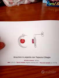 Orecchini arg.925 mezzaluna topazio ciliegia