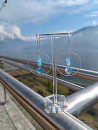 orecchini a cerchio in argento 925 pietre dure 6 mm in acquamarina cuori in pure crystal colore acquamarina lunghezza totale 6 cm