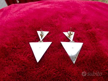 Bellissimi orecchini a doppio triangolo in argento sterling 925 con madreperla Abalone della Nuova Zelanda.