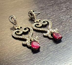 orecchini con zirconi e pietra rosa tipologia : orecchini donna materiale : argento titolo : 925 pietre : zirconi e ptr rosa