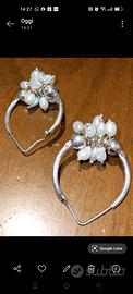 In ottime condizioni coppia orecchini in argento tipo fiore con perle
