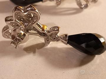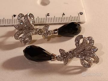 Eleganti orecchini pendenti in argento e piccoli zirconi molto brillanti. Chiusura con perno e farfallina . Sono con pietra pendente