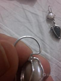 bellissimo paio di orecchini pendenti in argento 925 con perle barocche bianche e giada verde intagliati