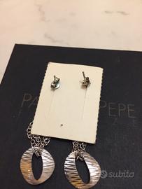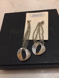Orecchini pendenti con quattro catenelle, in vero argento punzonato 925, lunghi cm. 5 e 1/2