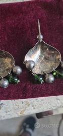 orecchini vintage in argento con ciondoli argento e cristalli verdi