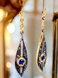 Orecchini in stile antico art decó periodo 1930-1940 in oro giallo 9kt e argento.