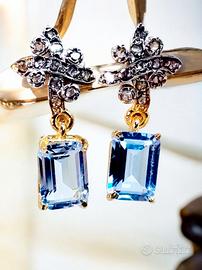 Orecchini in stile antico art decó periodo 1930-1940 in oro giallo 9kt e argento.
