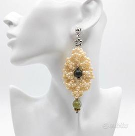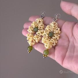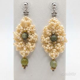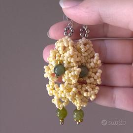 Orecchini Artigianali Boho Chic Gemme Giada verde