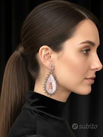 Orecchini Artigianali a goccia di Eleganti Boho Quarzo Rosa.