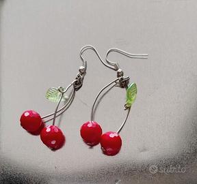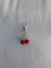 Descrizione del prodotto: Orecchini con perle imitazione rosse e foglia verde traslucida, mostrata sotto diverse luci e materiali. Monachella di color bianco argentato. Se vuoi un paio di orecchini unico e originale per te, questo fa per te!
