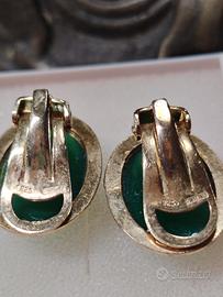 Bellissimi orecchini in argento 925 bagnato in oro con agata verde