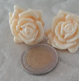 Eleganti orecchini beige, chiusura a PERNO, a forma di rosa.