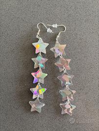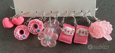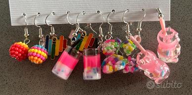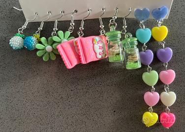 Come foto gli orecchini hanno varie forme: cuore, stella, donat, unicorno, girandola, margherita, conchiglia con sabbia, pallina, orsacchiotto, lecca-lecca, coctail...