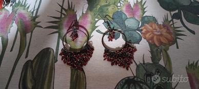 Orecchini cerchi con pendenti rossi su tono bronzeo