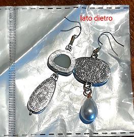 Orecchini bellissimi e nuovi, mai indossati. Colore verde e perla, in metallo bianco, veramente belli, asimmetrici, peccato che a me non stiano bene, sono più grandi di quello che pensavo. Forse sono più adatti con i capelli lunghi, o per occasioni diverse dalle mie abitudini. Appena arrivati con acquisto on line, li rivendo a metà prezzo. Nuovi, mai usati. Fermo in silicone.