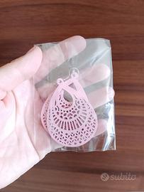 Orecchini boho in legno rosa traforati stile etnic