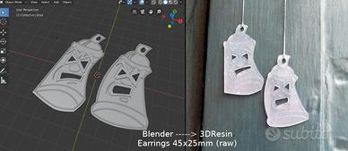 Orecchini in stile hiphop Kranio/Drugo stampati in 3D a resina. Minimo d'ordine cinque pezzi completi di clips [Consegna a mano su Roma]
