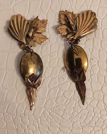 Orecchini Vintage - alta bigiotteria anni 70' - Firmati Briglia Luigi - Rari Orecchini originali vintage, anni 70, a clip in stile Art Déco - Foglie in ottone, strass floreali, grandi e scultorei cristalli color fucsia