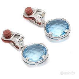 Carati :Topazi blu 10ct tot e diamanti 0,11ct tot Colore :F Condizione :Rigenerato Gemma :Diamanti taglio round e topazi Brand :Bulgari Materiale :Oro bianco 18 kt Misura :2,8x1,5cm Peso :15,41gr Purezza :VVS1 Scatola :Scatola Bulgari - Garanzia Orofirst 12 mesi