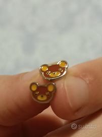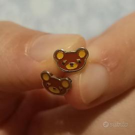 Orecchini chiudibili a bottone con orsetto giapponese Rilakkuma NUOVI