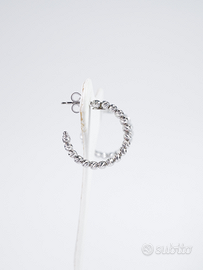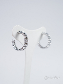 Orecchini cerchi a sfere martellate in oro bianco 750 18kt. Chiusura a vite. Spessore max. 4.94mm Grandezza 21.40 x 21.30mm G. 6.30 Gioiello ricondizionato