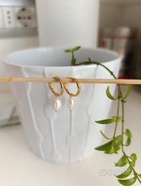 Orecchini in acciaio inossidabile con pendente perla di fiume. Dimensione cerchio: 1.5 cm.