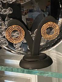 Orecchini a cerchio realizzati a mano in Italia, in bronzo brunito. Lavorazione a cera persa. Nuovi, mai usati. Gli orecchini non sono pesanti, dato che sono traforati. La lavorazione chiaro è riso, che vedi nelle foto del metallo brunito, e’ voluta e dona un aspetto invecchiato, e allo stesso tempo lucentezza.