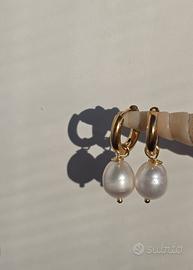 Orecchini a cerchio con pendente di perla di fiume bianca realizzati da me