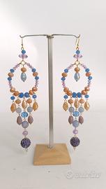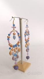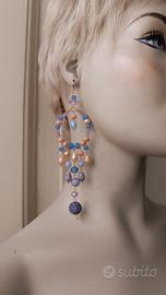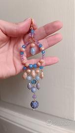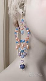 Questi orecchini chandelier artigianali sono un sogno di eleganza e raffinatezza. La loro palette di colori, che gioca tra sfumature cipria, azzurro polvere e lavanda, dona un effetto etereo e sofisticato, perfetto per chi ama i dettagli unici.