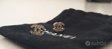 Vendo orecchini Chanel originali in metallo e strass, completi di scatola e sacchettino.