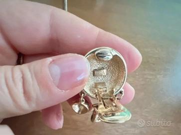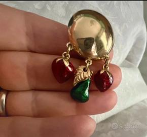 Orecchini a clip color oro con pendenti fragole smaltate e pera e toglie bijoux di ottima fattura e qualità del marchio