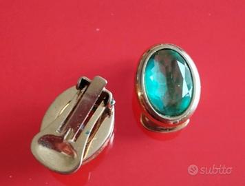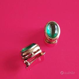 bellissimi orecchini clips dorati pietra verde Alta bigiotteria