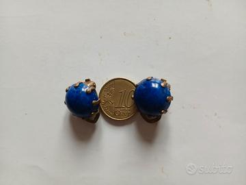Orecchini anni 70 blu con gancetti ferma pietra misurano come 10 cent circa come da foto