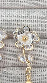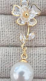 Orecchini di straordinaria artigianalità che uniscono la bellezza organica di una conchiglia, la delicatezza di un fiore e la luminosità senza tempo di una perla. Il ferretto è in argento 925 placcato oro 14K, garantendo la massima sicurezza ipoallergenica. Il corpo principale, in ottone placcato con uno spesso strato di oro 14K tramite un processo di elettroplaccatura di alta qualità, assicura una finitura di lusso, una brillantezza eccezionale e una resistenza alla scoloritura nel tempo. Un capolavoro che celebra la sinfonia della natura.