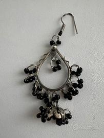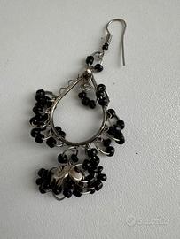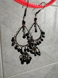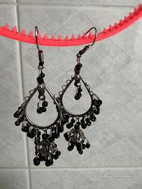 Eleganti orecchini pendenti in metallo e piccole perline nere