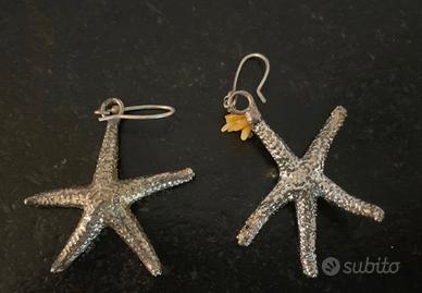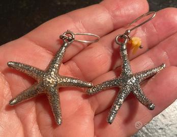 Orecchini molto originali perché realizzati con stelle marine vere (raccolte sulla spiaggia e non pescate in mare!) ricoperte in argento. Presente un piccolo corallo in uno dei due. Per lobo con buco. Prodotto di Artigianato. Inviati in confezione regalo (inclusa nel prezzo)o. Perfetti per aggiungere un tocco di originalità al tuo look.