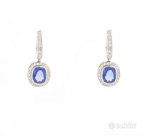 Bellissimi orecchini in oro bianco 18 carati (750/000) peso totale 8,9 grammi, con zaffiro Ceylon natural No Heat e diamanti a contorno.