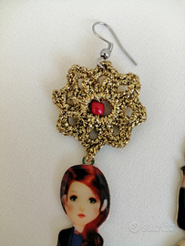 SIRACUSA. Vendo a 20 euro particolari orecchini all'uncinetto, pendenti. Bigiotteria, Handemade. Orecchini "Bambolina" realizzati con filato laminato color oro. Perline vetrose color corallo. Orecchini all'uncinetto, lavorati interamente a mano con grande cura dei dettagli. Nuovo. Lunghezza dalla monachella in poi 5 cm. Consegna a mano a Siracusa.