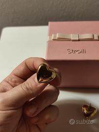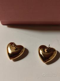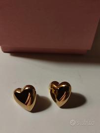 Orecchini in acciaio dorato a forma di cuore usati pochissimo e completi di scatola. Chiusura con farfallina